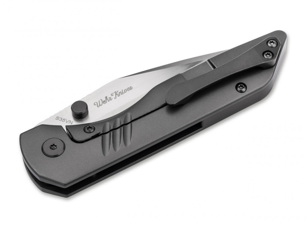 Maximális élesség – ez az állítás teljes egészében igaz a Matthew Wehrwein (Wehr Knives) által tervezett Böker Plus Max-ra. Az Alabama államban dolgozó custom késgyártó késeit kedvenc kutyáiról nevezi el. A Böker Plus Max szatén bevonatú, porkohászati acélból készült CPM S35VN pengéje a hüvelykujj támasznak köszönhetően a legmakacsabb vágási munkákat is megoldja. A sötétszürke mart titánból készült markolatpanelek jól illeszkednek a kézbe, és vizuális egységet alkotnak a penge kioldására szolgáló tömör frame lock-kal. A szintén mart klipsz megbízhatóan rögzíti a kést a biztonságos szállítás érdekében. Kiváló minőségű nylon tokkal szállítjuk.
