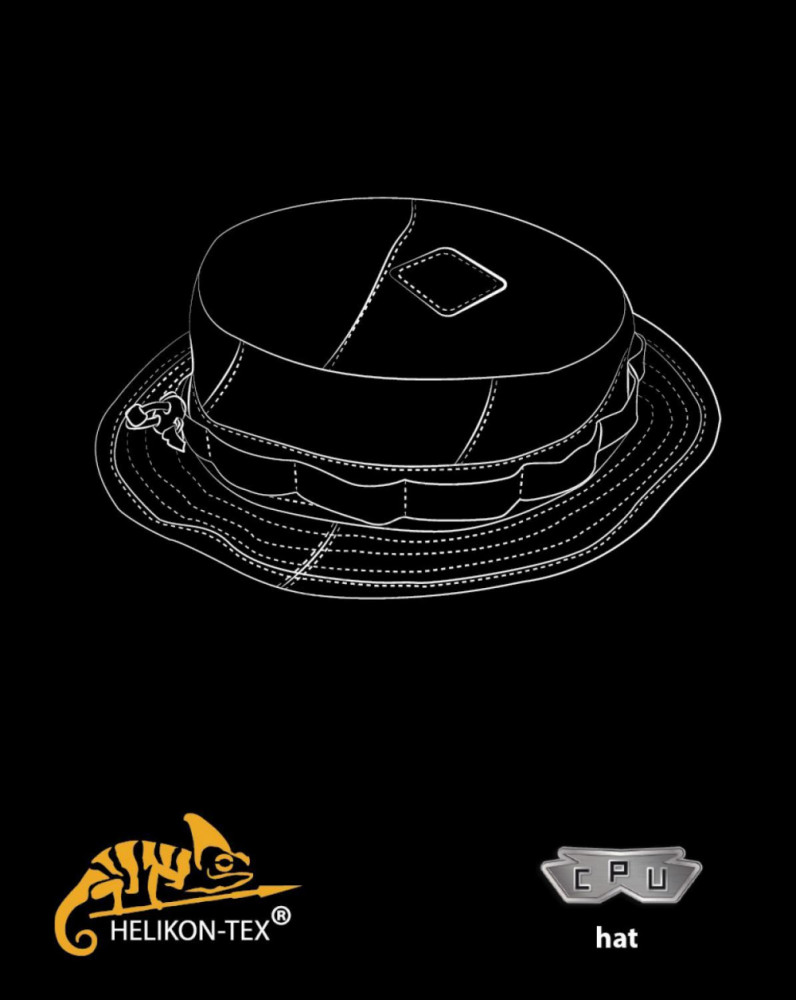 Klasszikus szabású kalap, keskeny állítható karimával, két méretben. A megszokott fémhálós szellőzőnyílás helyett rejtett hálócsatornákkal szerelve, melyek javítják a légáramlást. Erdei és sivatagos terepre tervezve. Nedvszívó betét javítja a viselési komfortot, és megakadályozza az izzadtság összegyűlését a homloknál. Hatékony védelmet nyújt a nap és az eső ellen.
