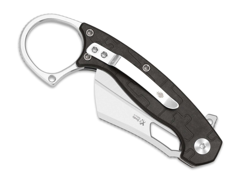 A Dodo egy átgondoltan megtervezett karambit stílusú kés a Giedymintől, amelyet kompakt konstrukciója és magas funkcionalitása különböztet meg. A Nitro-V acél penge kiváló vágási teljesítményt nyújt, és PVD bevonattal rendelkezik. A lapos élezés precíz vágásokat és tartós éltartást biztosít. Két nyitómechanizmus áll rendelkezésre: nyitófurat és flipper, amelyek gyors és egyszerű használatot tesznek lehetővé. A liner lock mechanizmus biztosítja, hogy a penge biztonságosan nyitott maradjon. A nyél Richlite-ból készült, amely könnyű és kényelmes fogást biztosít. A kés fekete színe stílusos, modern megjelenést kölcsönöz neki. Az integrált zsebcsipesz praktikussá teszi a mindennapi hordozáshoz. A Dodo zsebkés így ideálisan ötvözi a funkcionalitást és a vonzó dizájnt.